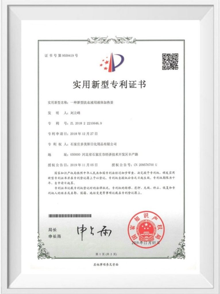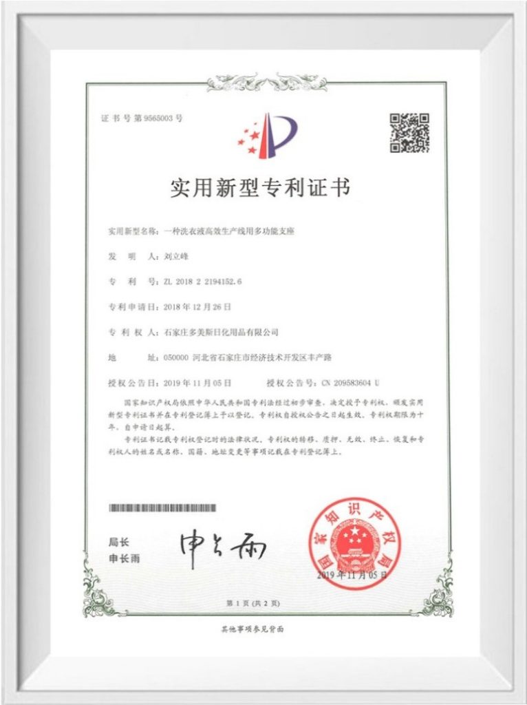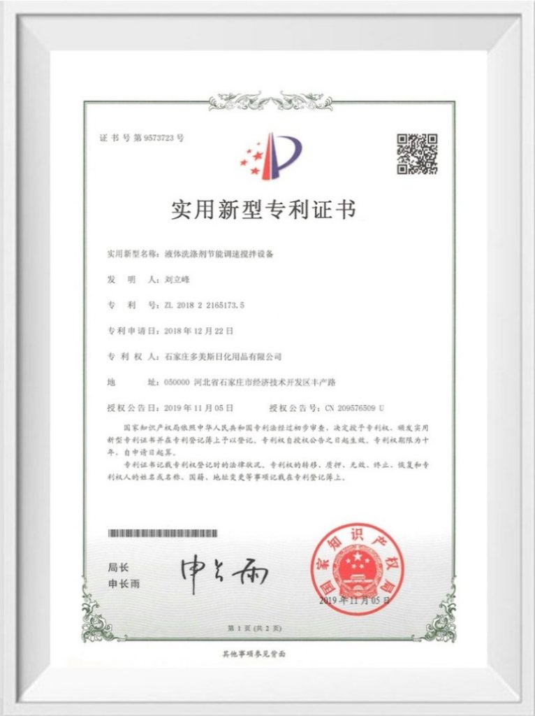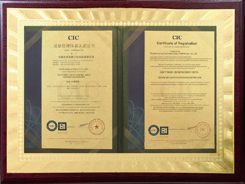ООО Шицзячжуан Домэйсы Товары Бытовой Химии специализируется на исследованиях и разработке средств для дезинфекции, антибактериальной очистки и ухода за одеждой и домом, располагает научно-исследовательским центром разработки продукции и лабораторией международного профессионального уровня, а также современной производственной базой, занимающей площадь 20 000 квадратных метров, с годовым объемом производства до 730 000 тонн.